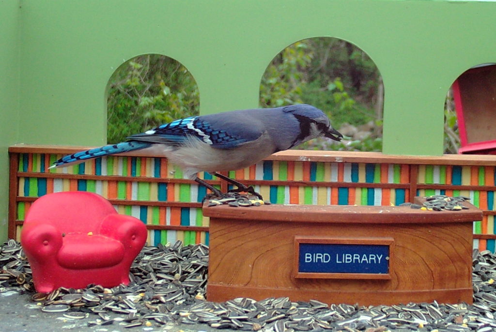#library4birds birdfeeder birds birdwatching BlueJay Charlottesville JKRowling library