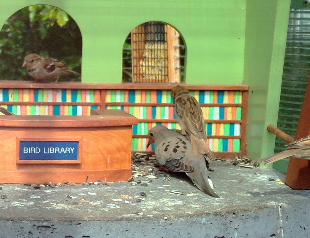 Back Off The Bird Library, now with piggyback rides! #library4birds birdfeeder birds birdwatching librarian library MissDove piggyback Sparrows Share: Older Post I Was a Teenage Starling Newer Post Birds are Back
