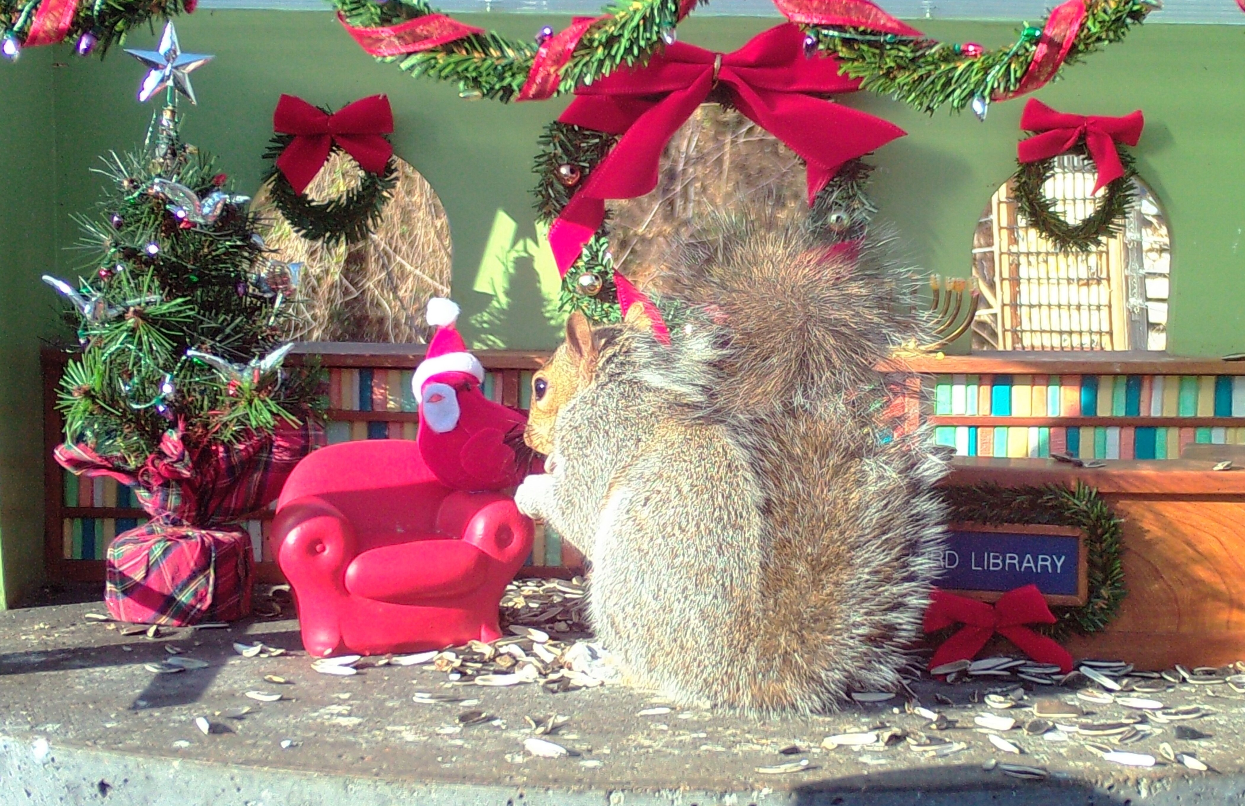 birdfeeder birdwatching librarians libraries library4birds merrychristmas Santabird squirrel
