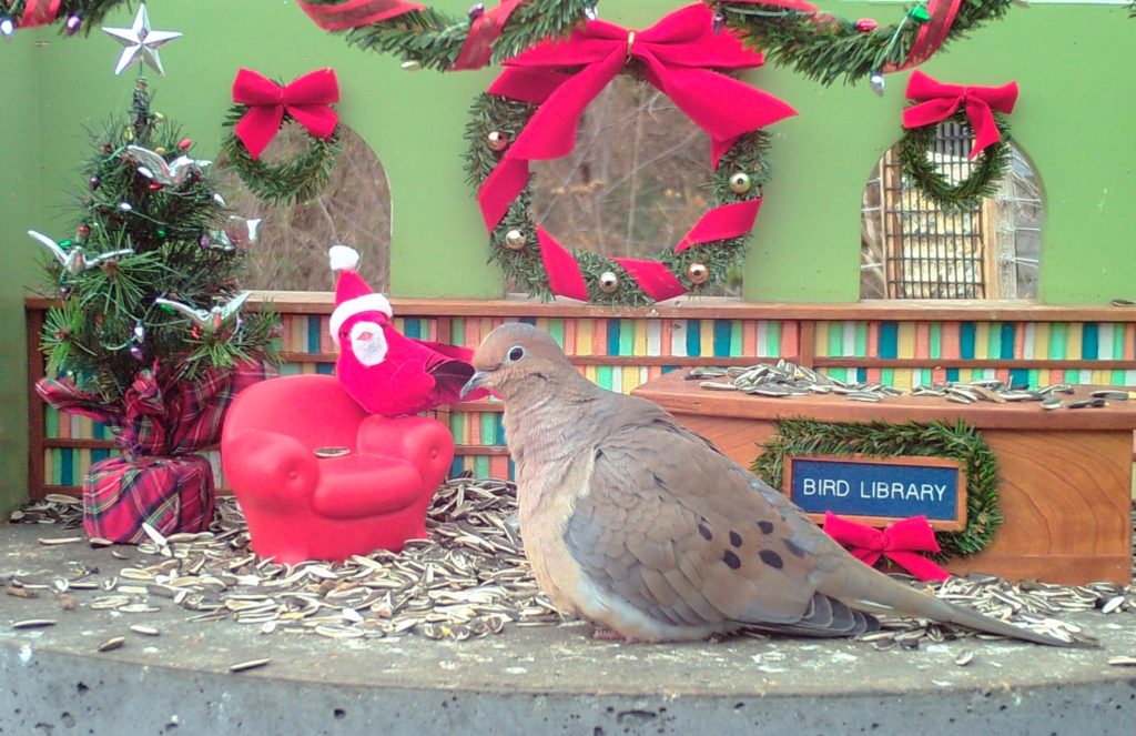 When Doves Cry “Santa, being a Mourning Dove is so depressing. I wish I could be a Turtledove for Christmas, at least I’d have a song, and not that Prince one about crying.” #library4birds birdfeeder birdwatching librarians libraries MissDove MourningDove Santabird Share: Older Post Chestnuts, please. Newer Post All the Books