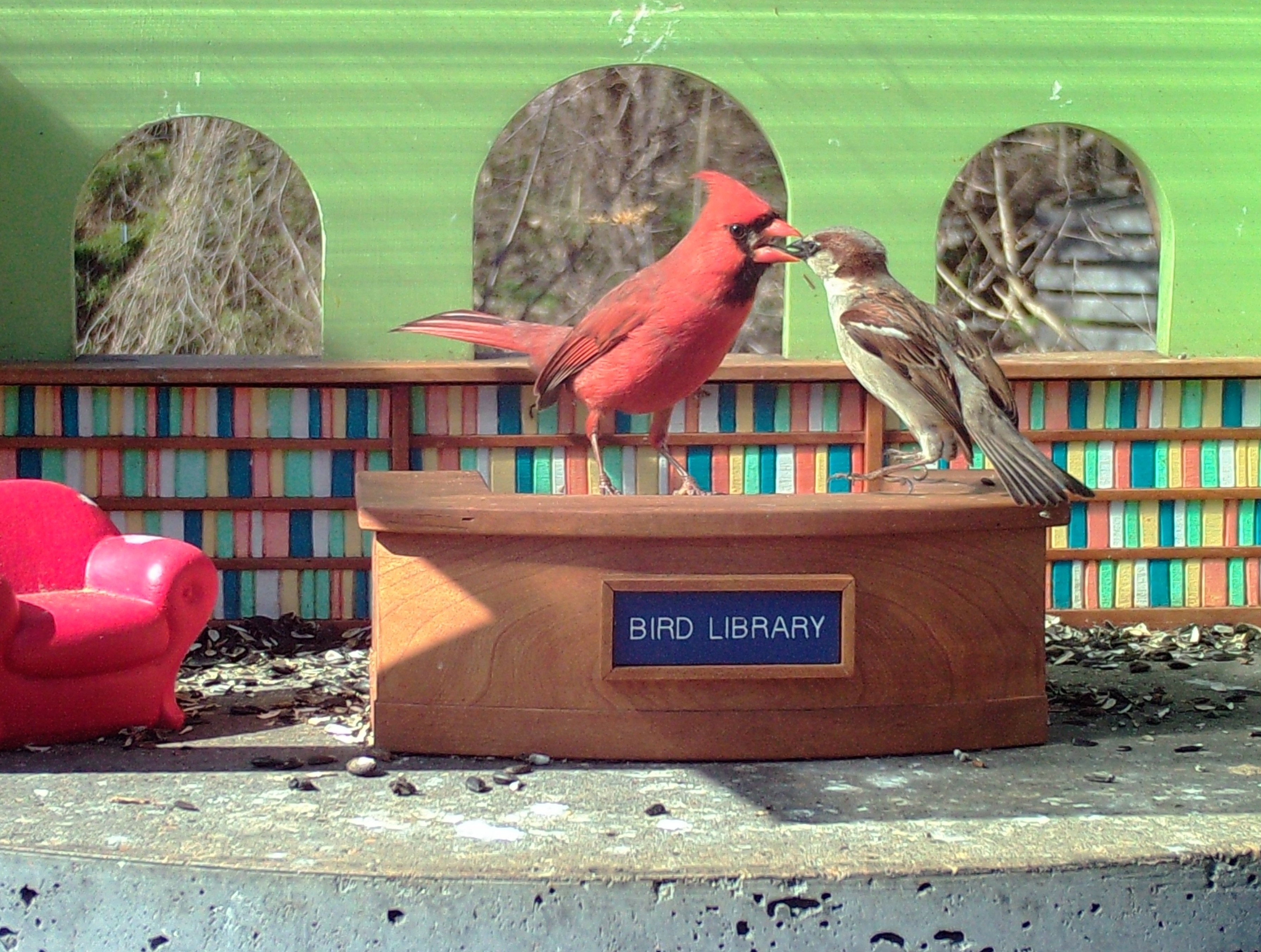 #library4birds birdfeeder birds birdwatching Cardinal dontdothis librarian library' mouthsharing Sparrow stayhealthy vabirdlibrary wedonthavehands