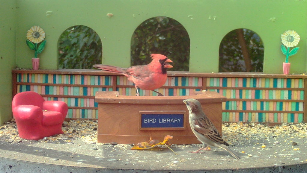 birdfeeder birds birdwatching Cardinal librarians libraries library4birds poplarity Sparrow vabirdlibrary