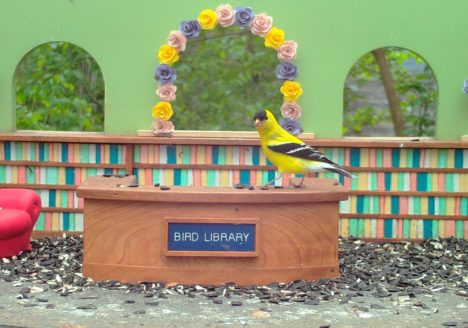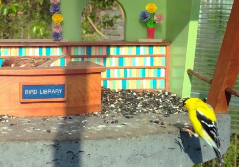 We noticed a female goldfinch eating dandelion fluff in the yard the other day.