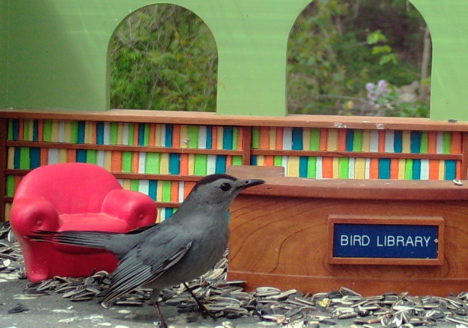 You may have heard that books are the most dangerous thing in the library, but Carolina Wren thinks it’s this red chair. It’s armed, after all.