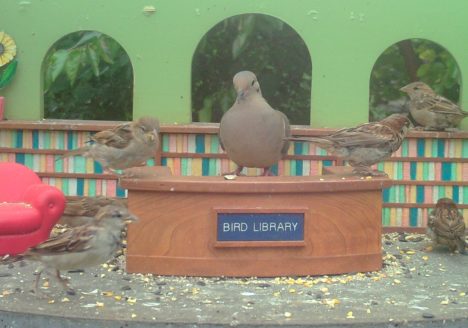 “Why are all the birds hanging out in that tree over there?” “Don’t know, must be a poplar tree.”